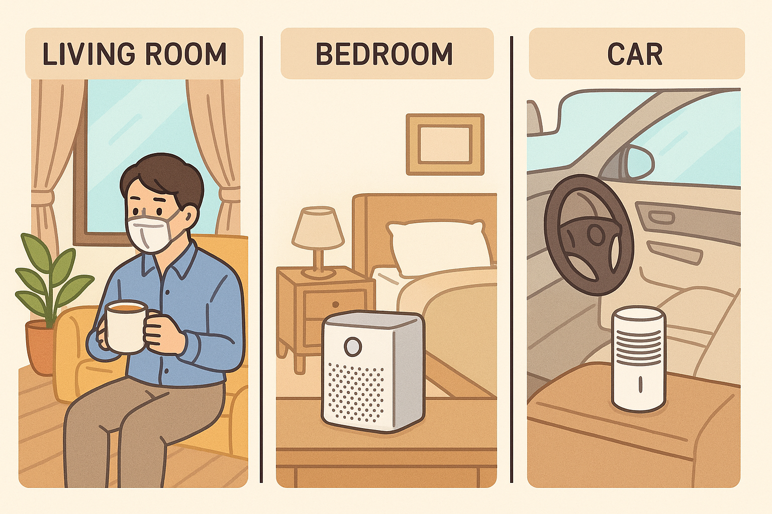 - 가능한 한 방마다 공기청정기 설치 (특히 침실 필수)