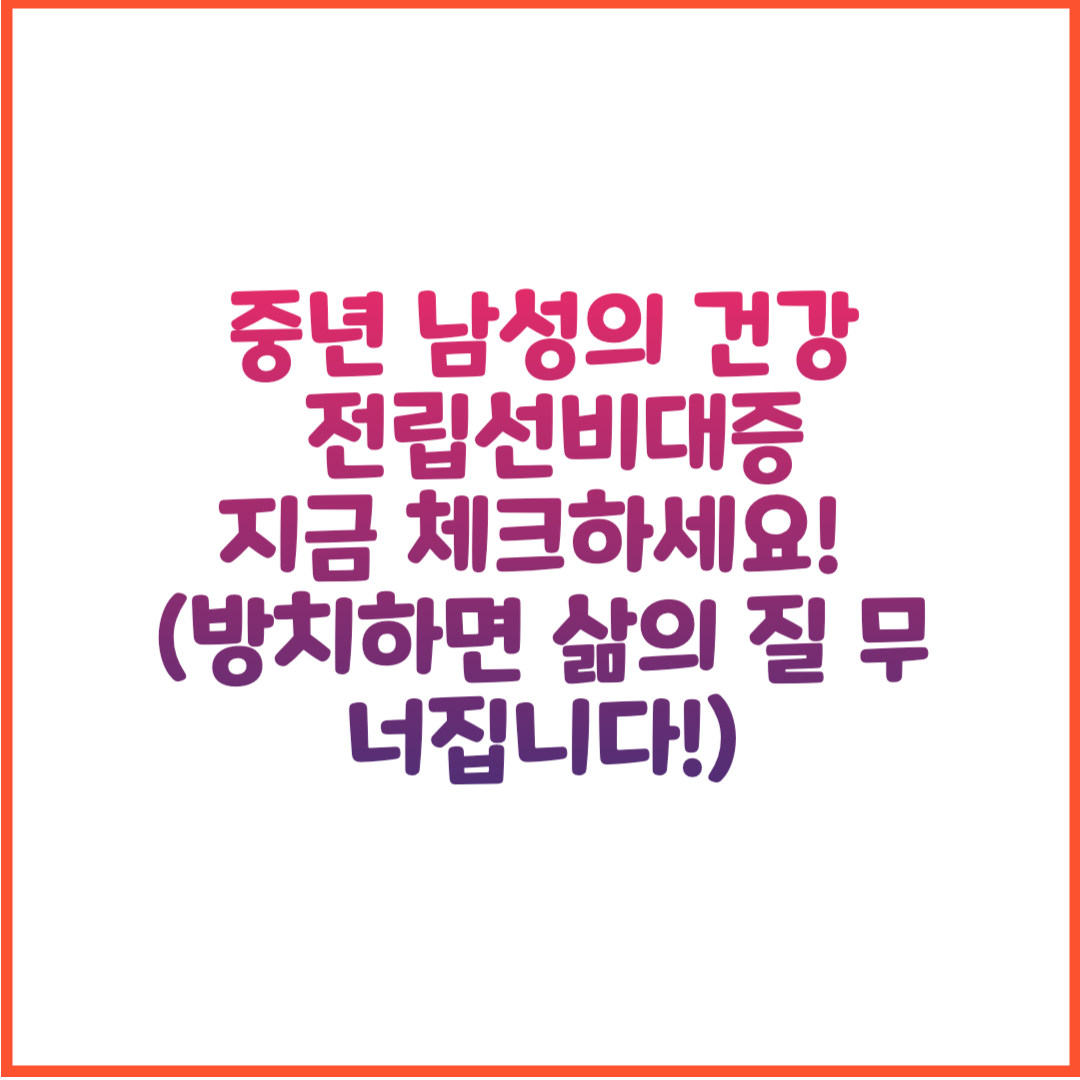 이 글은 전립선비대증으로 인해 불편을 겪는 분들께 정확한 정보를 제공하고자 작성되었습니다. 자가진단을 통해 현재 상태를 점검하고, 자연치유와 운동, 식단 등 다양한 방법을 통해 삶의 질을 회복해보시기 바랍니다.