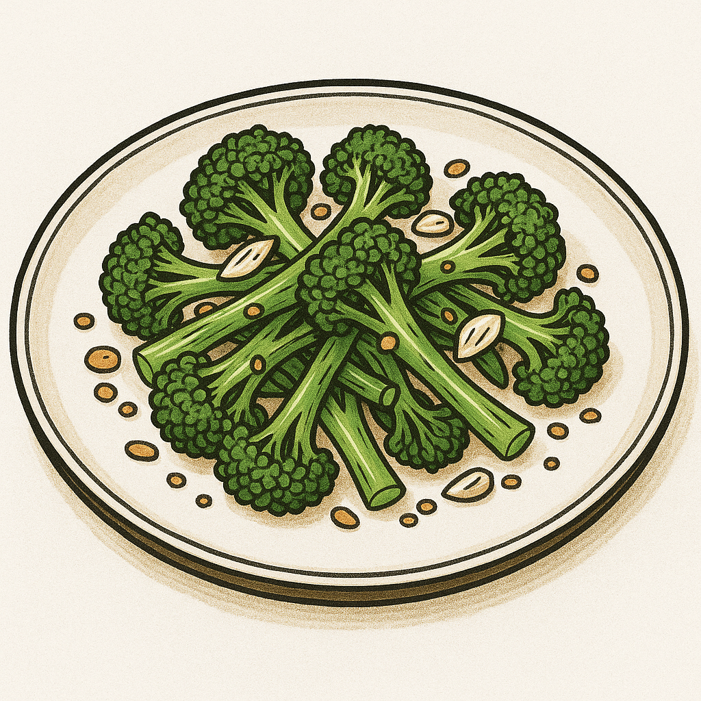 - 재료: 브로콜리 1송이, 다진 마늘 1작은술, 참기름 1큰술, 소금 약간